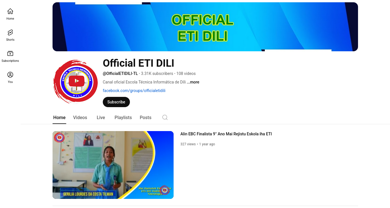 Kanál Youtube Ofisiál Escola Técnica Informática de Díli ida-ne’e maka fatin ida ba kriatividade no informasaun ne’ebé hatudu atividade eskolár oioin, hahú husi informasaun kona-ba kritériu rejistu estudante foun, atividade eventu sira, to’o dokumentasaun estrakurikulár Escola Técnica Informática de Díli.